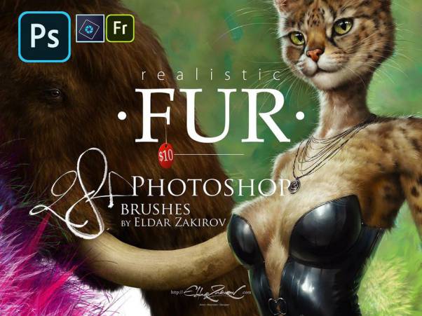 逼真的动物毛皮纹理ps笔刷素材,包含了28 种出色的 Photoshop 画笔,用于在绘制动物、毛皮、带有毛皮的