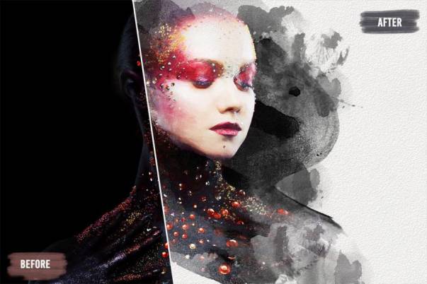 实现独特的水彩涂抹效果,非常适合用于海报、贺卡、邀请函及其他各种水彩手绘插画设计当中。