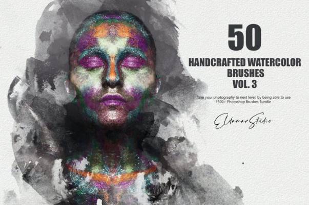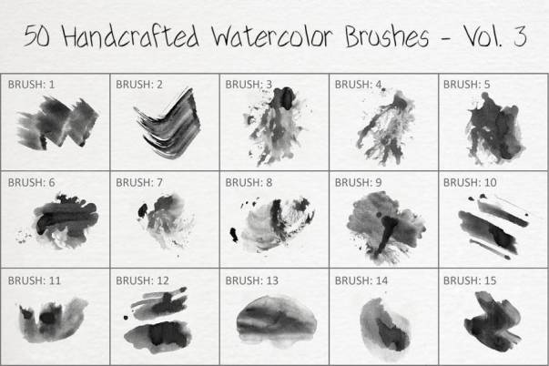 一套复古水彩手绘涂抹艺术风格PS笔刷素材,总共有50个不同涂抹样式的水彩笔刷,风格随性,极具艺术感。