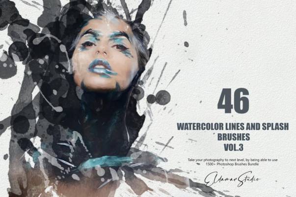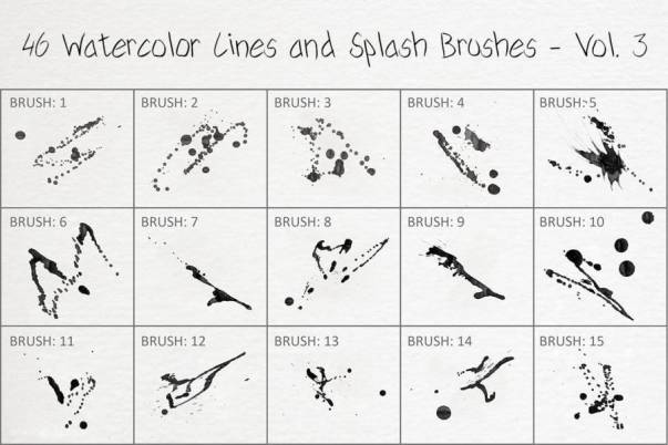 一套水彩喷溅的圆点线条色块PS笔刷素材,总共有46个不同飞溅样式的水彩笔刷,风格随性潇洒。素材为ABR格式,