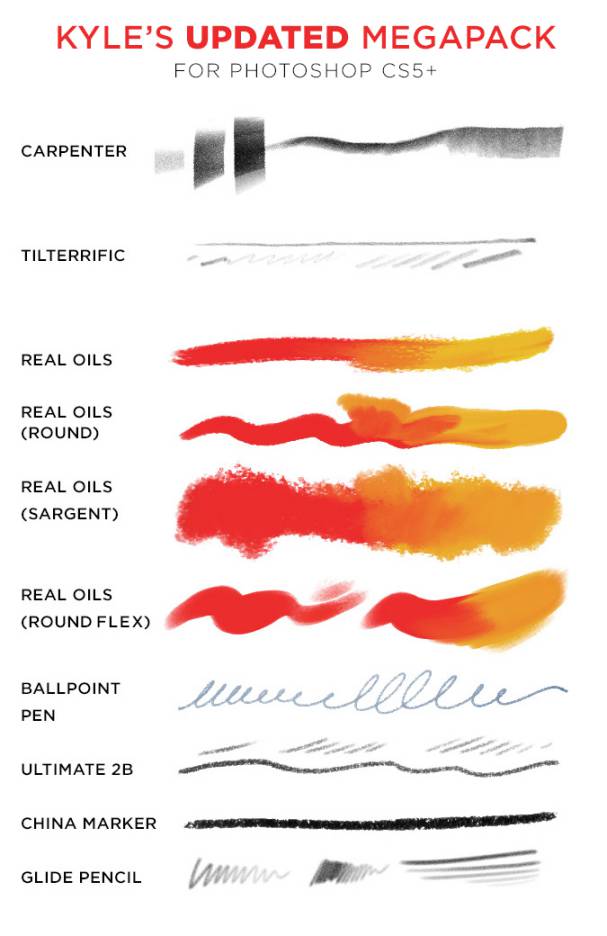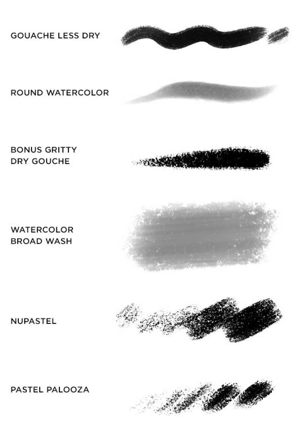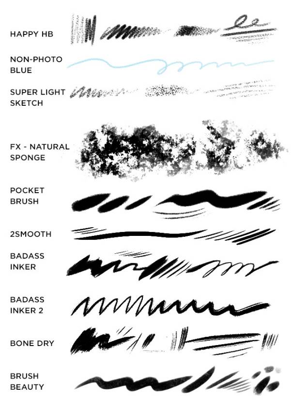 本套素材包含了140多个自然笔刷:油画笔刷、墨水笔刷、水彩笔刷、铅笔笔刷、粉彩笔刷、水粉笔刷等。
