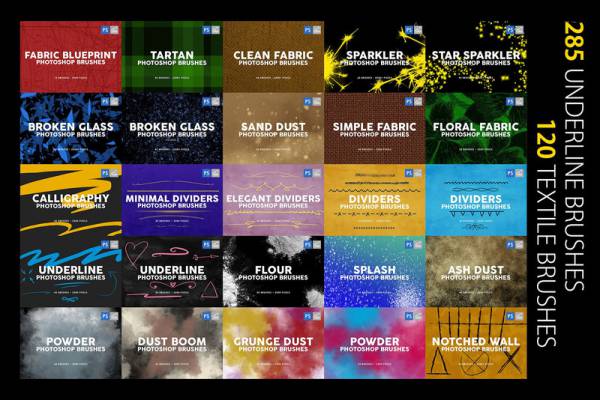 艺术纹理效果的Photoshop图案笔刷素材,总共有3000多个流行的Photoshop艺术效果笔刷