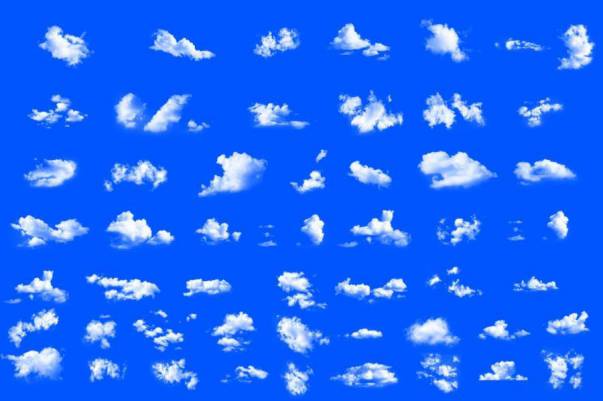 真实相机拍摄的梦幻白云图案PS笔刷素材,总共有50个不同形状的云朵笔刷,均使用佳能5D单反相机拍摄,