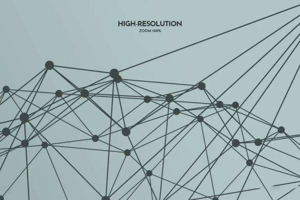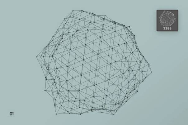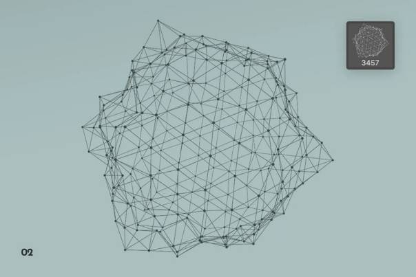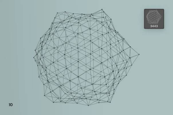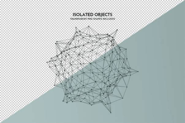 该画笔描绘了抽象的几何对象和细线随机连接的粒子构成的网格多边形形状。
