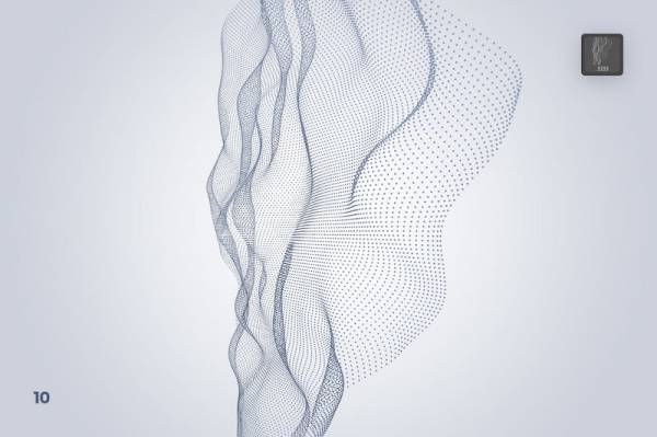 数字粒子流动立体波浪效果ps笔刷,文件内包含了10个酷炫的高分辨率画笔,以及10个透明的PNG文件,