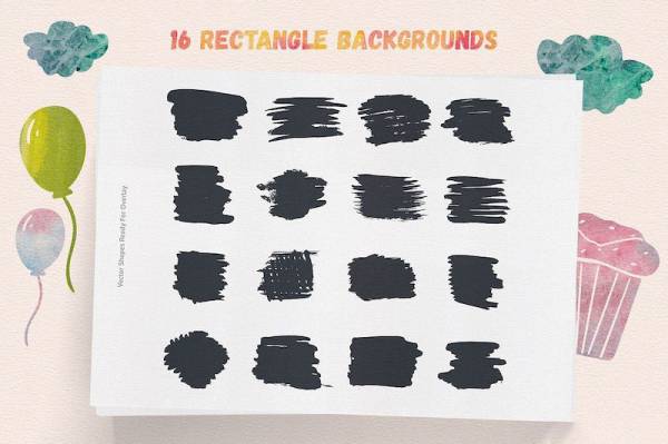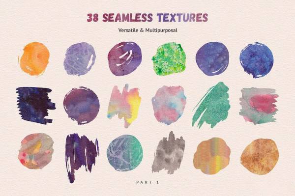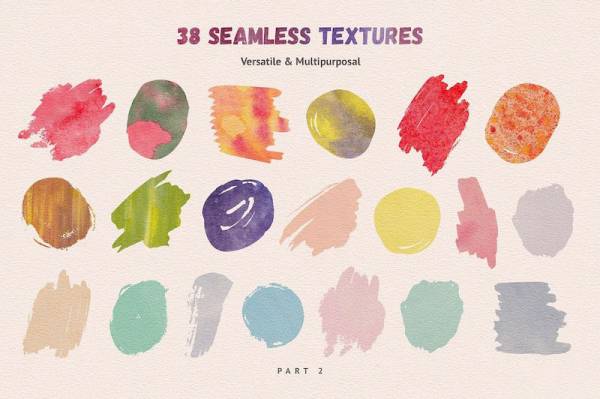 一套充满艺术效果的水彩画笔笔刷插件,文件内包含了38个无缝柔和纹理、16种手绘矢量矩形形状、