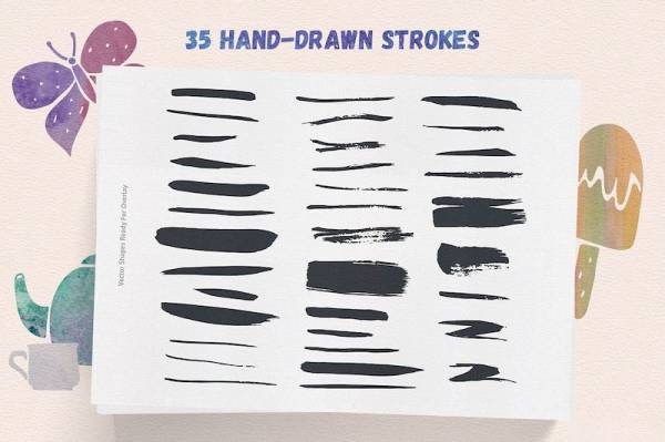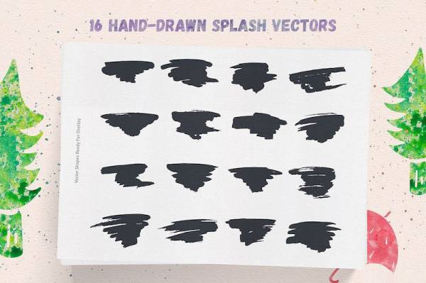 35个手绘矢量笔画、16个手绘飞溅向量、16个手绘圆圈、6次喷溅笔刷、
