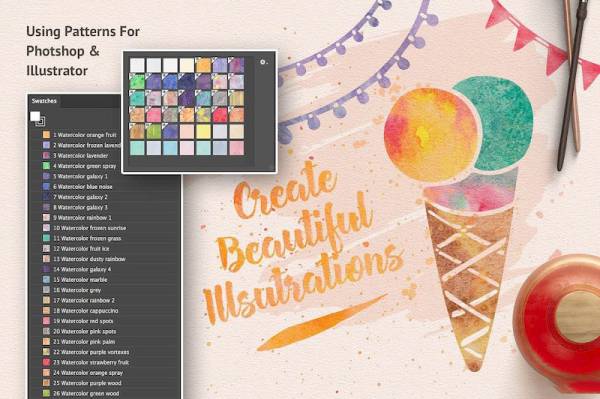 35个Photoshop笔刷以及4种无缝纸张纹理。借助这些方便的水彩笔来创建精美的设计!它们非常易于使用,