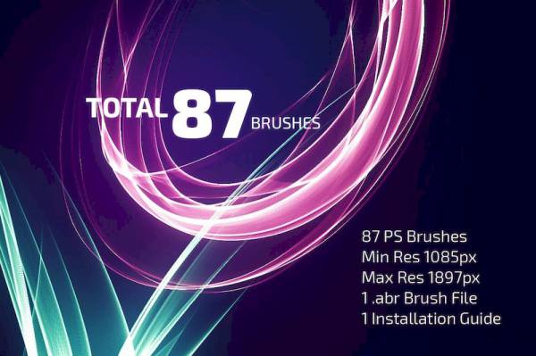 抽象效果的烟雾PS画笔笔刷插件,文件内包含了87个高分辨率画笔,可用于各类照片、海报的处理以及
