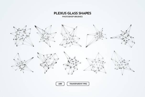 玻璃材质的神经网络状ps笔刷插件,文件内包含了10个不同的笔刷预设,这组笔刷可用于创意项目的抽象