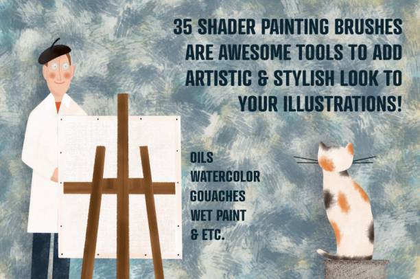包括油画笔刷、水粉笔刷、丙烯笔刷等。素材可以根据您的不同需要创建对应的阴影效果,非常适合用于具有年代