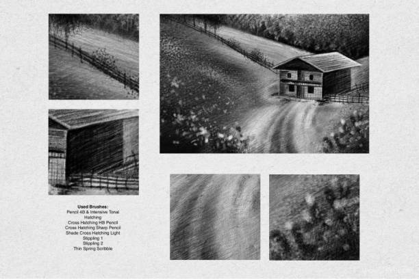 Procreate笔刷-素描黑白涂鸦铅笔阴影纹理效果笔刷素材