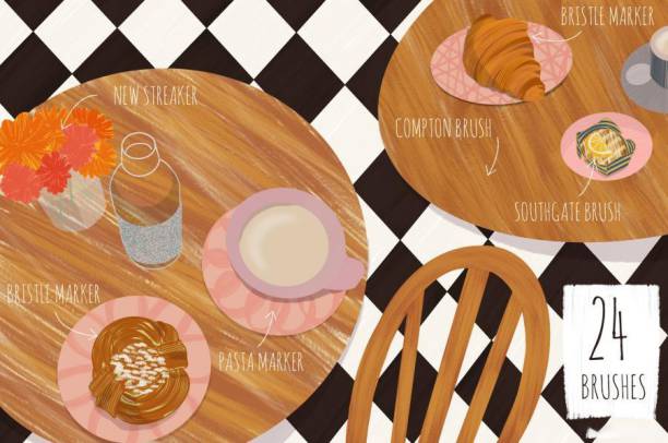 复古风格的记号笔手写招牌文字procreate笔刷素材,总共有24个不同效果的笔刷,包括条纹笔刷、双层笔刷、