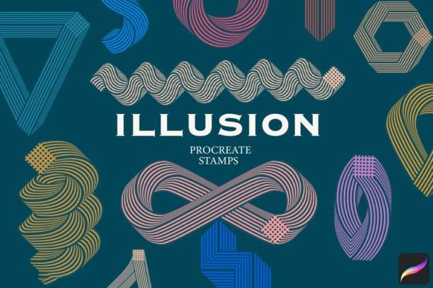 Procreate笔刷-抽象风格几何图形条纹状图案笔刷素材