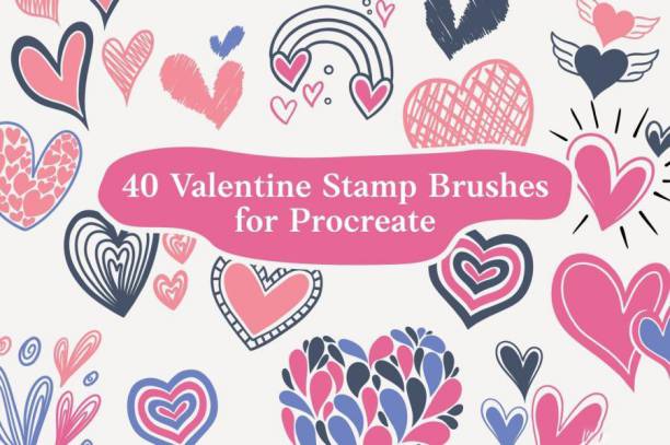 卡通可爱的甜蜜爱情主题图案Procreate笔刷,总共有40种不同设计的高品质笔刷,整体手绘风格可爱甜美,