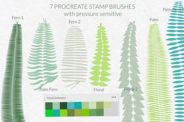 Procreate笔刷-花卉棕榈和蕨类植物图案笔刷素材