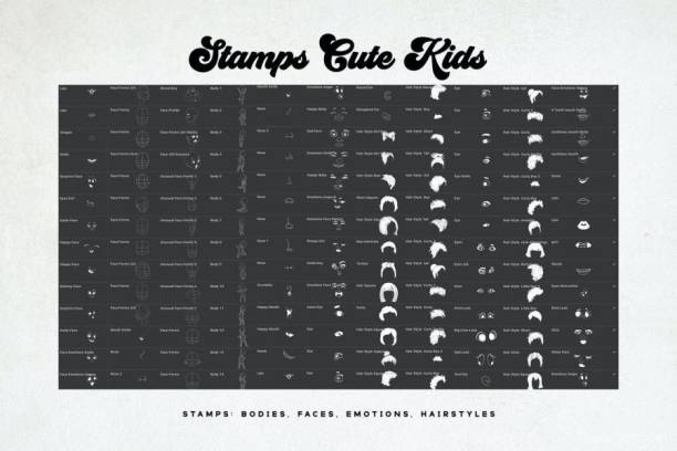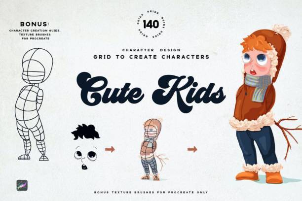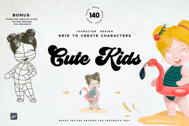 可爱卡通儿童角色Procreate笔刷素材集合包,可用于创建可爱的卡通儿童形象。素材内包含:140个儿童