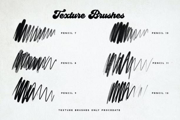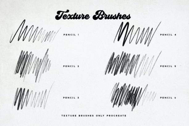 不同动作和不同部位的线稿图案画笔(脸部特征、眼睛、鼻子、耳朵、发型等)、一组纹理画笔(纺织品、
