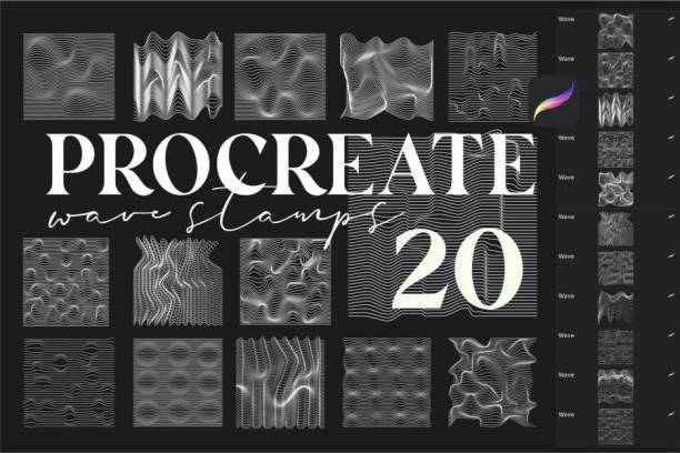 一套立体抽象扭曲波浪线条纹理图案Procreate笔刷素材,一共包含20个不同扭曲样式的抽象笔刷,这组笔刷