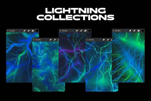 雷电闪电形状图案的Procreate笔刷素材,总共有20个笔刷素材,这些笔刷是由真实的闪电图像组合而成的。