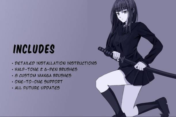 另外还有4个动漫的色卡。这些 Procreate 画笔经过精心制作,可为您提供与真正的漫画艺术家相同的工具。