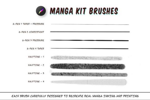 日式漫画插画专用的Procreate笔刷和色卡素材,总共有8个笔刷,包含4 个半色调笔刷和 4 个 G 笔刷,