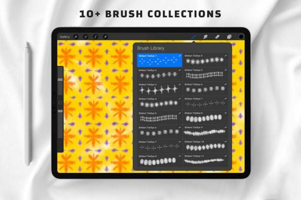 Procreate笔刷-时尚扎染图案纹理笔刷和色卡素材