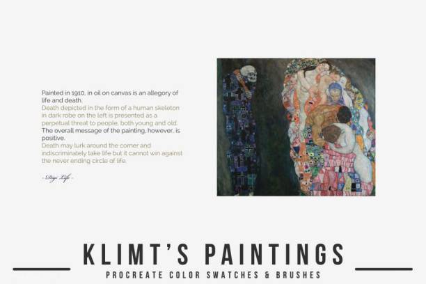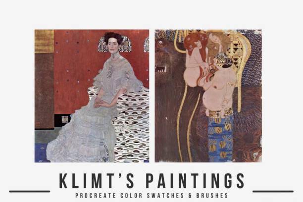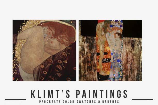 古斯塔夫·克里姆特Gustav Klimts象征主义水彩油画Procreate艺术笔刷和色卡素材,总共有300多种色板和