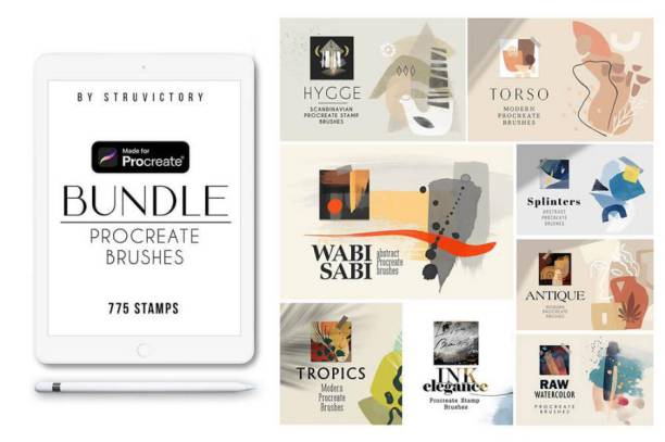 创意水彩艺术几何装饰图案procreate笔刷素材,总共有775个图案笔刷和18张作品模板。其中包含了许多不同