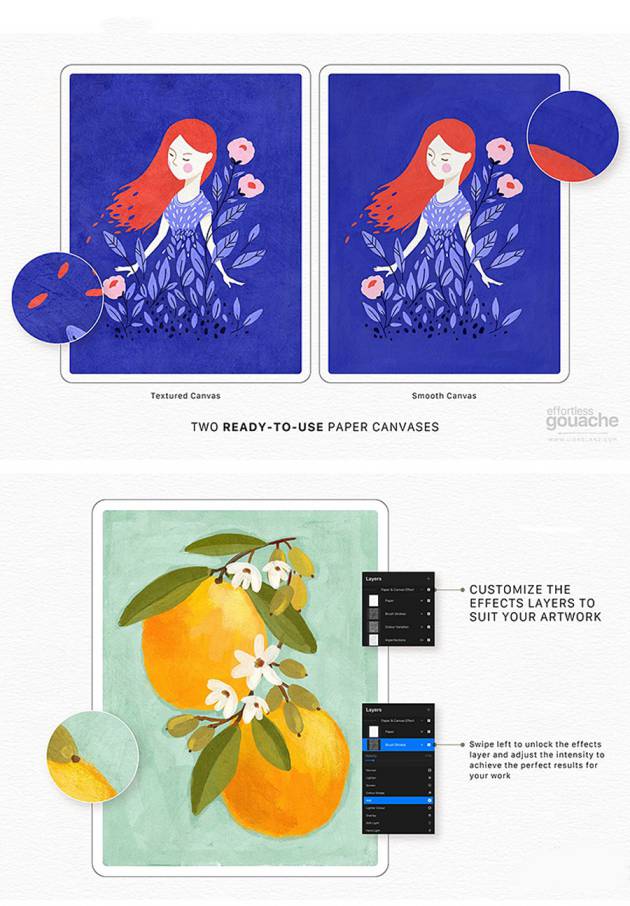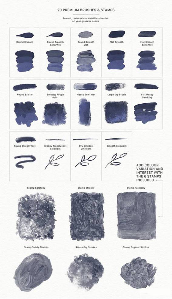 图穷设计网 » Procreate笔刷-水粉水彩纹理线条Procreate笔刷附赠画布+色卡