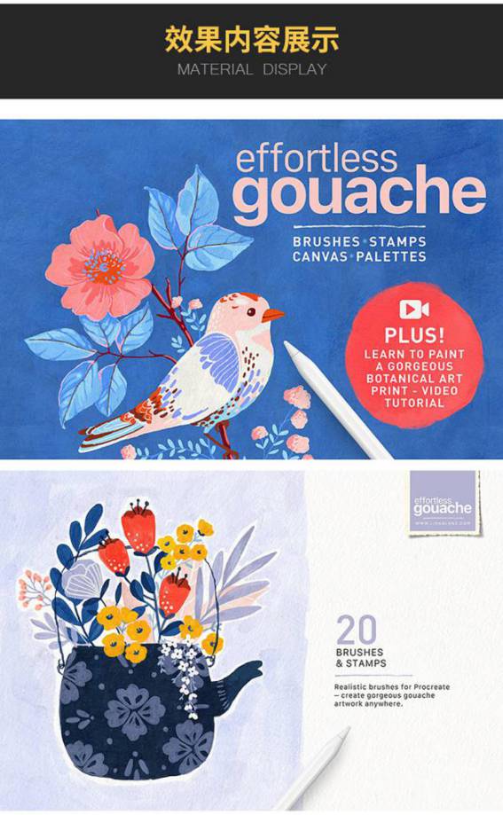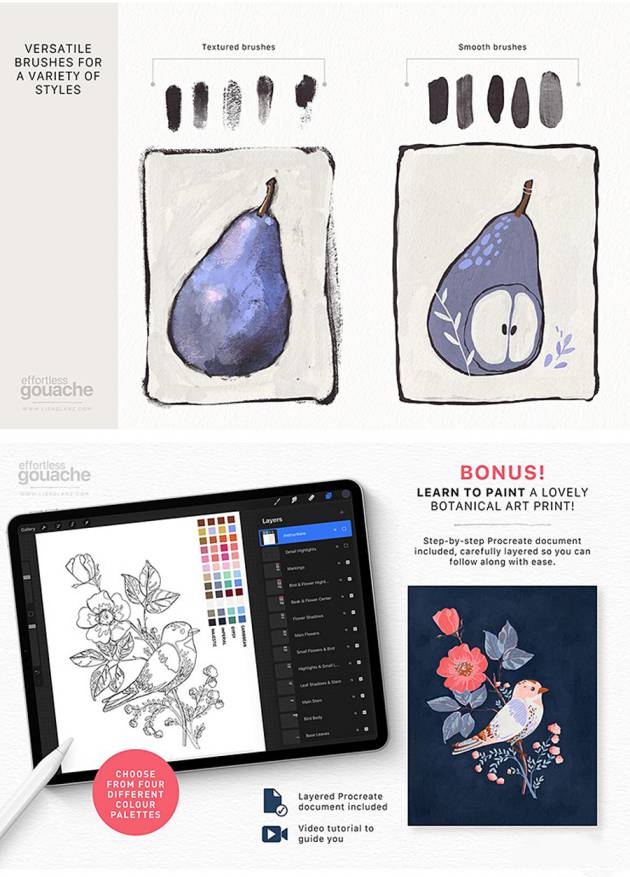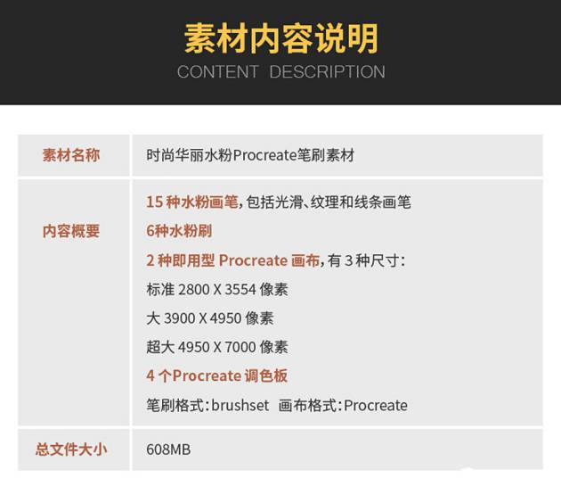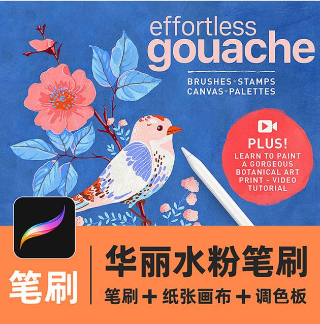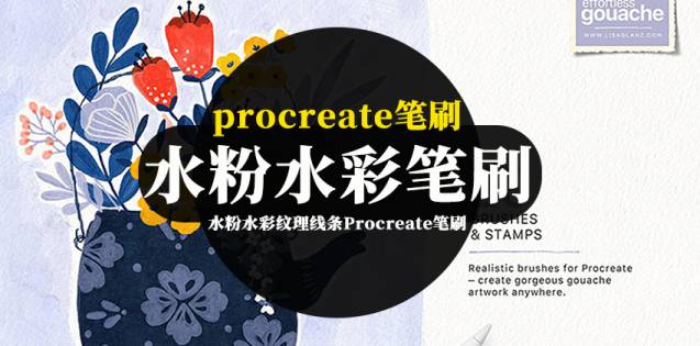 Procreate笔刷-水粉水彩纹理线条Procreate笔刷附赠画布+色卡