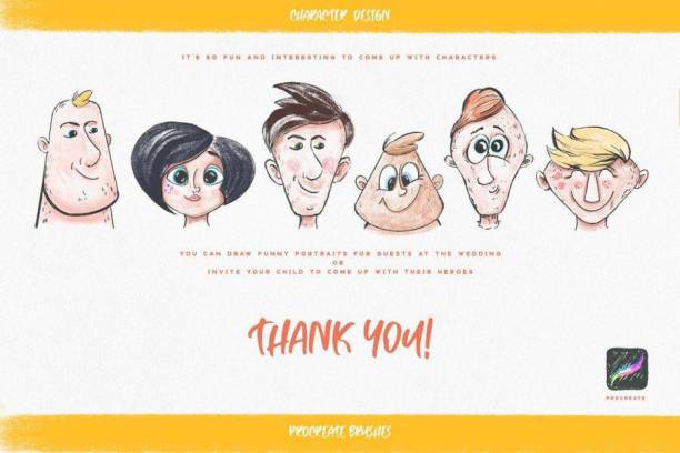 Procreate笔刷-卡通人物头型角色线稿笔刷素材下载