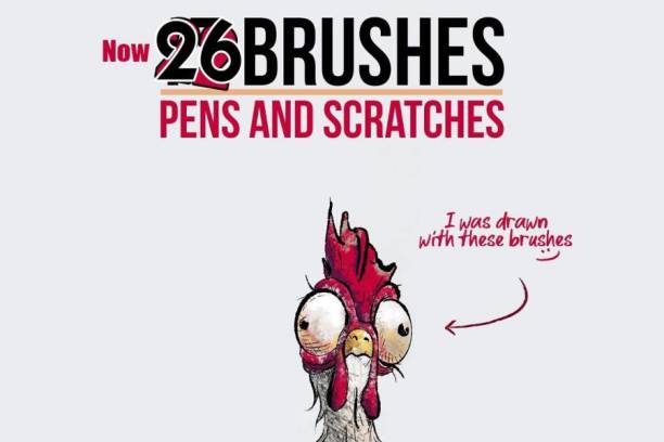 凌乱草稿线条效果的Procreate笔刷素材,总共有26个独特的笔刷,包含有故障毛刺笔刷、刮擦笔刷、摩擦笔刷、
