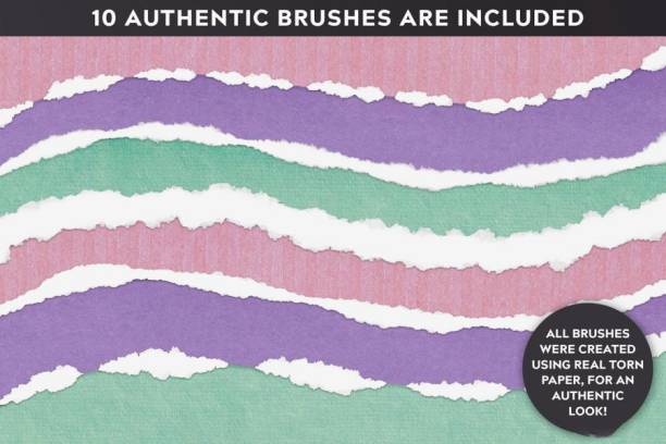 各种不同的撕裂边缘。有了本套笔刷,您可以快速轻松地绘制撕裂的边缘,将它们准确地放置在您想要的位置,