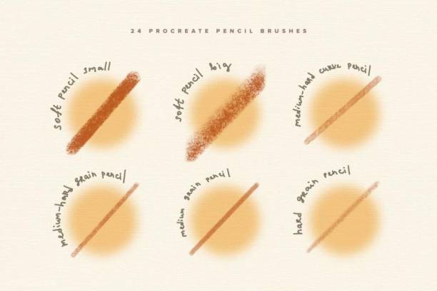 铅笔艺术绘画纹理效果的procreate笔刷素材,总共有24个具有不同粗细、纹理变化的高品质笔刷,包括硬条