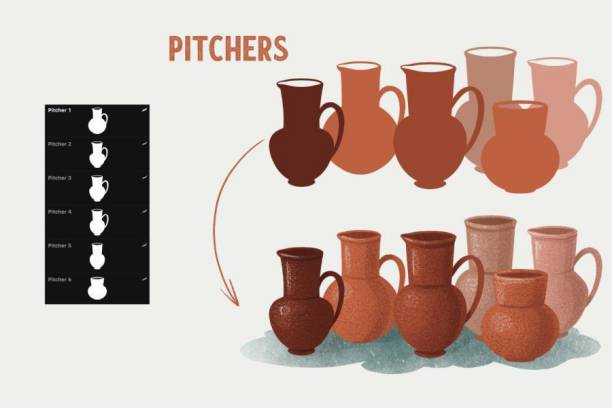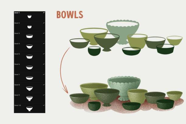 经典复古风格的厨房用品图案Procreate笔刷素材,总共有51个不同笔刷,分为碗笔刷、茶壶笔刷、陶罐笔刷、