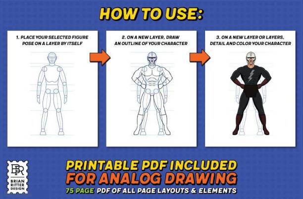 漫画创作设计的线条图案procreate笔刷工具包,总共有70个高品质线条图案,包含分镜格子、人体线条动作画法、