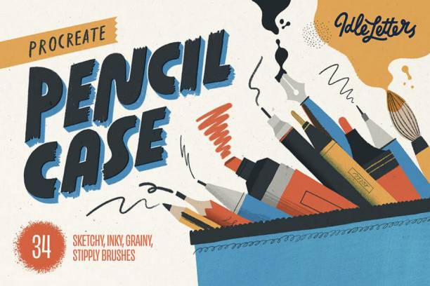 图穷设计网 » Procreate笔刷-素描铅笔钢笔记号笔复古画风颗粒纹理笔刷套装