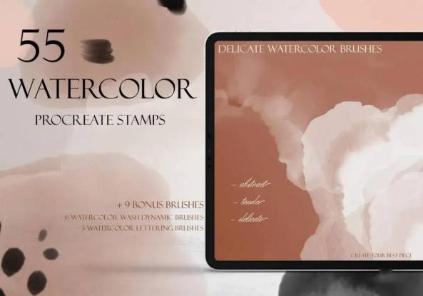 Procreate笔刷-64款逼真水彩水墨效果Procreate笔刷设计素材
