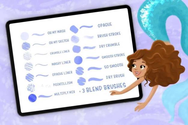 图穷设计网 » Procreate资源-水粉水彩艺术绘画效果Procreate画笔套装