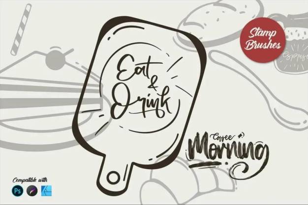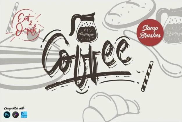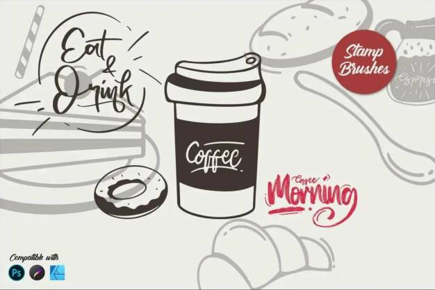 该早晨咖啡场景元素印章笔刷素材具有多种不同的形状,可以制作自己设计的装饰品。它非常易于使用,并使您的设计美观。