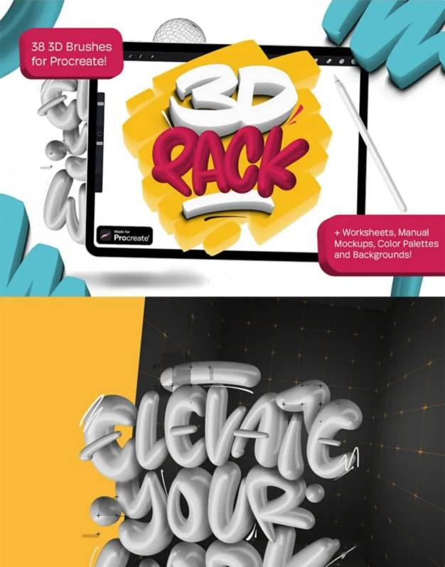 Procreate笔刷-38款爆火3D立体Procreate笔刷