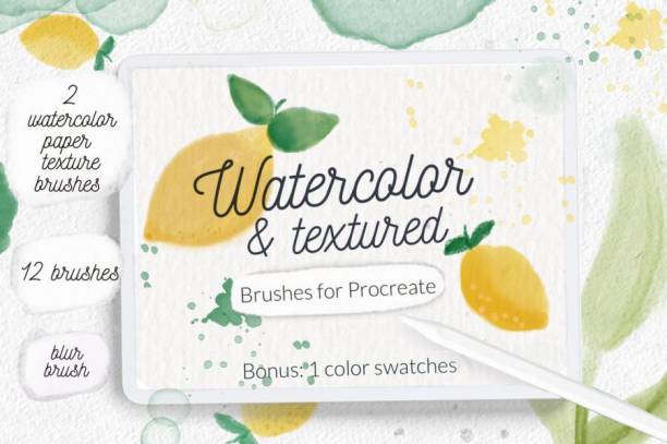 一套适用于Procreate的水彩笔刷素材集合包,总共有15个画笔,包含具有水彩纹理、