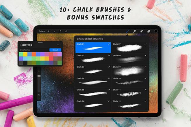 图穷设计网 » Procreate笔刷-彩色粉笔素描湿粉笔画笔笔刷资源下载