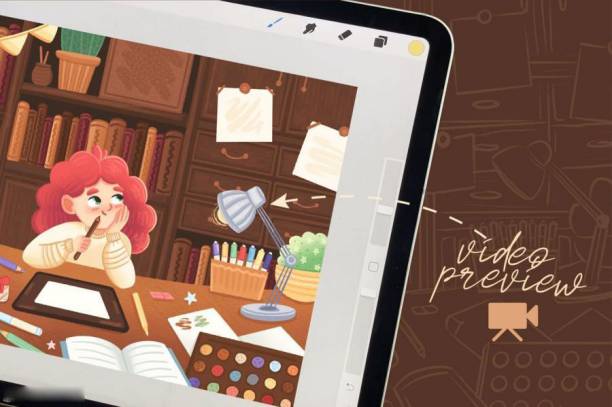 儿童插画创作的procreate纹理笔刷和色卡素材,包含有15 个纹理画笔,非常适合儿童书籍插图画家,