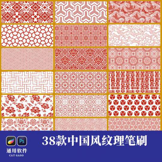 Procreate笔刷-procreate笔刷资源-中国风雕花吉祥图案底纹背景纹理PS笔刷合集下载