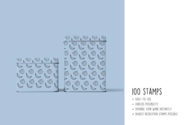 植物、动物、水果、卡通形象。你可以使用这些笔刷创作您自己的可爱艺术品。