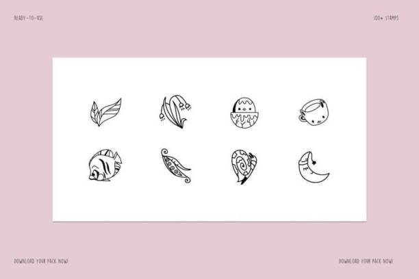 图穷设计网 » Procreate笔刷-可爱线条插画图案的笔刷资源下载素材
