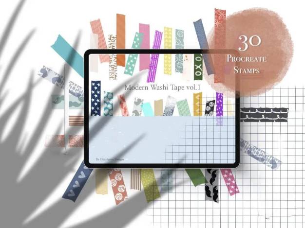 使用30个新款现代装饰纸胶带Procreate笔刷创建漂亮的设计或丰富您的创新出口!