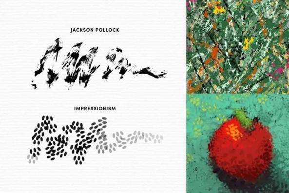 还包括2种有趣的特种画笔,它们模仿了杰克逊·波洛克和印象派画家的风格。